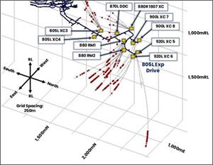 - Infill drilling from Crosscuts 3 and 4 of the 805L Exploration Drive focused on upgrading Inferred Mineral Resources to M&I categories ahead of the upcoming Mineral Resource update and economic studies.