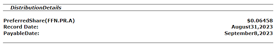 There will not be a distribution paid to the Class A shares for Aug. 31, 2023, as per the prospectus, which states no regular monthly dividends will be paid on the Class A shares in any month as long as the net asset value per unit is equal to or less than $15.