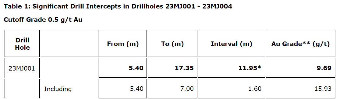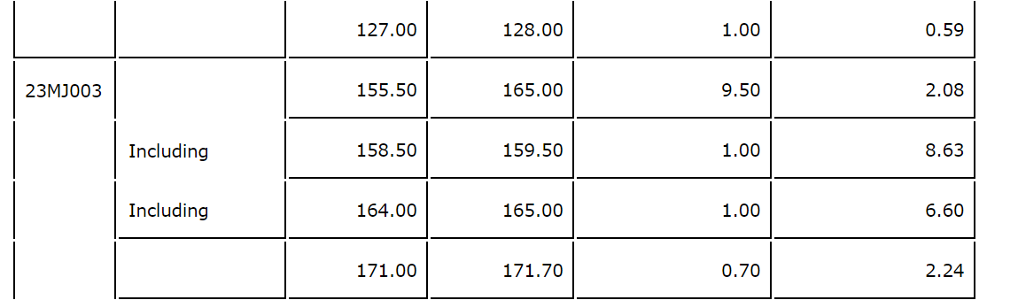 • Including 3.45 m at 19.43 g/t Au, which includes 1.55 m at 34.72 g/t Au.
