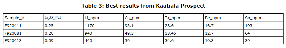 The company's projects are in the Kaustinen-Seinajoki region, which is highly prospective for LCT pegmatite deposits, as evidenced by the success of the Geological Survey of Finland (GTK), and subsequently Keliber Oy in discovering significant Li-bearing spodumene pegmatite prospects and deposits in the region. The initial success in identifying lithium-rich pegmatitic boulders from the phase 1 program is very encouraging, as the area is topographically flat and extensively covered by a thin veneer of glacial overburden.