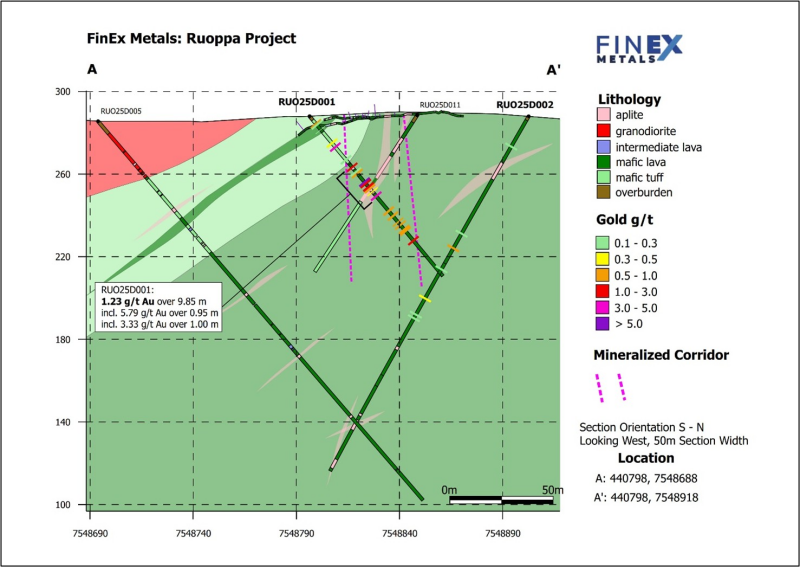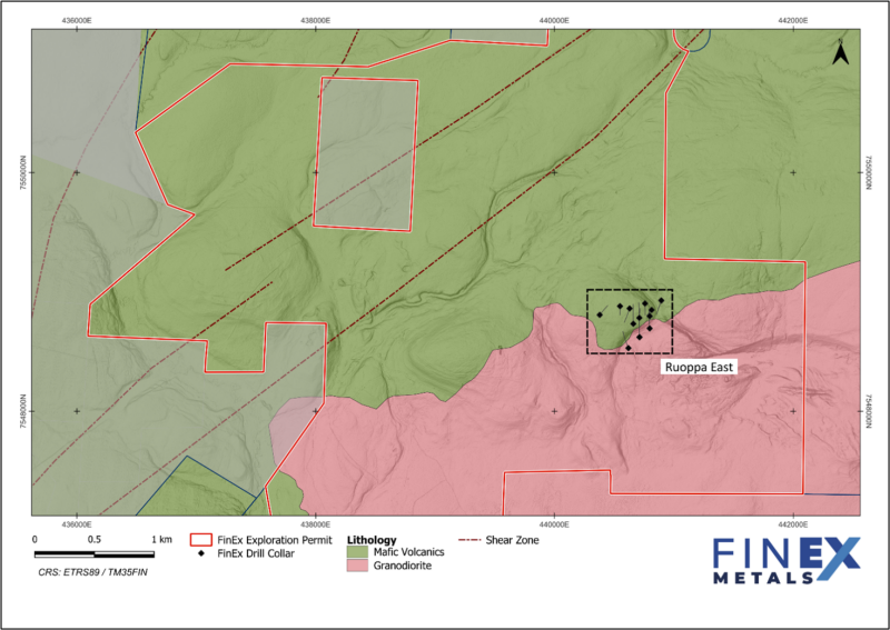 Vancouver, British Columbia – TheNewswire - November 25, 2025: FinEx Metals Ltd. (TSX-V: FINX) ("FinEx" or the "Company" ) announces that it has received initial assay results for the first five drill holes from the East Target of its 100%-owned Ruoppa gold project, located in the Central Lapland Greenstone Belt of northern Finland.  The Company completed its first diamond drill program at Ruoppa, comprising fourteen drill holes totalling 2,483 metres, in August and September 2025.