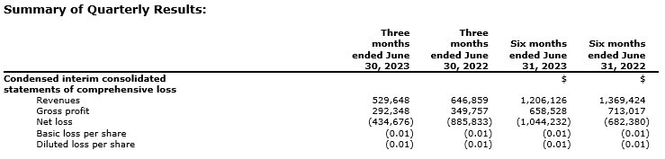 For complete details, please refer to the unaudited condensed interim consolidated financial statements for the three and six months ended June 30, 2023, and 2022, and associated management's discussion and analysis for the three and six months ended June 30, 2023, available on SEDAR+ or on the company's website.