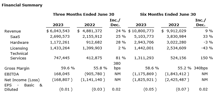 FLYHT REPORTS SECOND QUARTER 2023 RESULTS