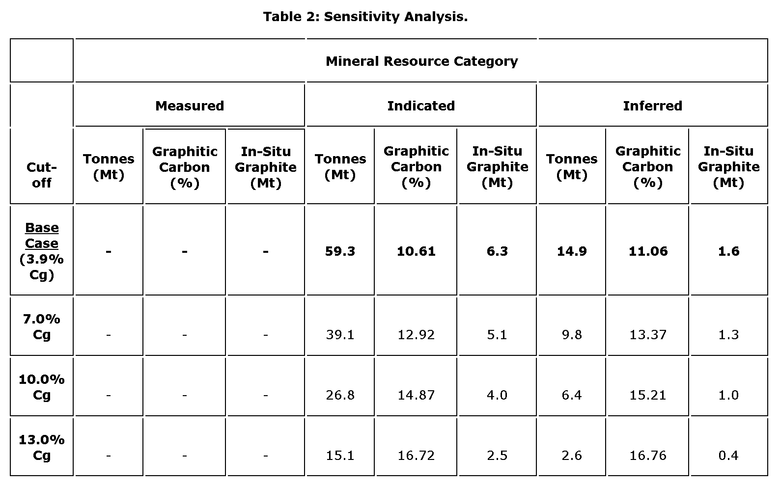 The mineral resources have been classified according to the CIM definition for classification of indicated and inferred mineral resources. All blocks interpolated during the first and the second pass have been classified as indicated mineral resources. All blocks interpolated during the third pass have been classified as inferred mineral resources. A cut-off of 3.9 per cent Cg has been applied to disclose the estimated mineral resources.