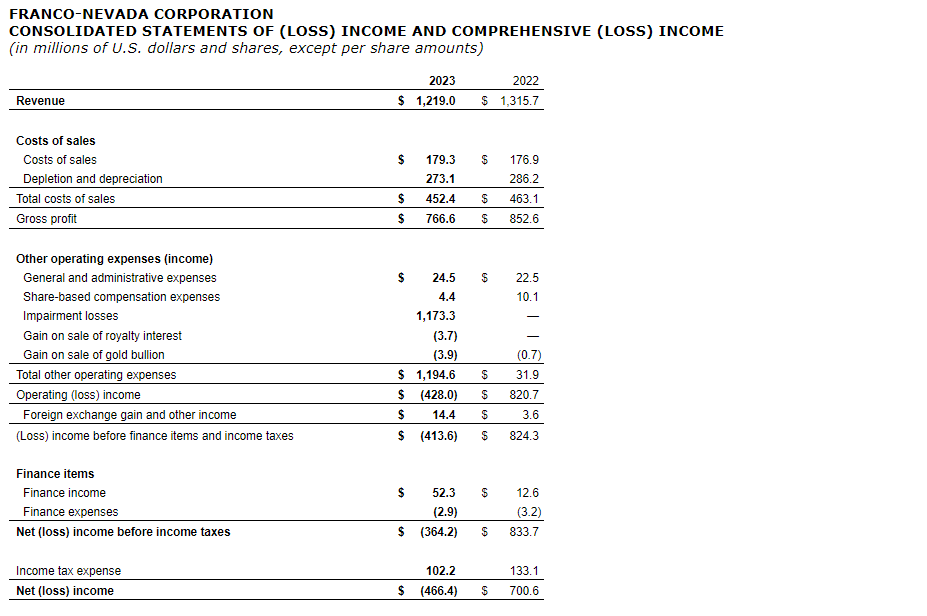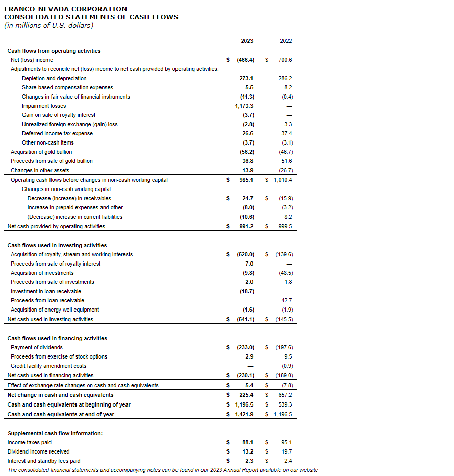 FRANCO-NEVADA REPORTS 2023 RESULTS