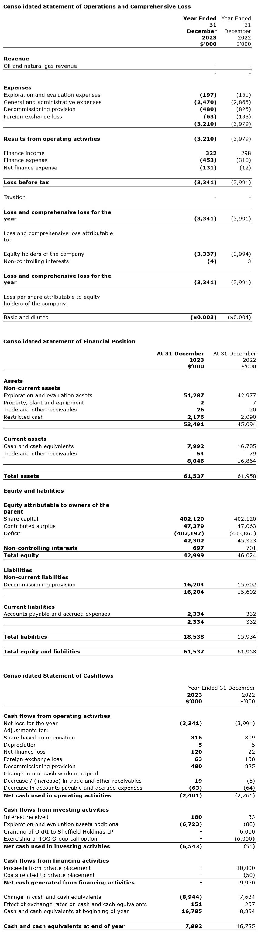 The following should be read in conjunction with the complete audited financial statements and the accompanying Management's Discussion and Analysis (''MD&A'') for the year ended 31 December 2023.