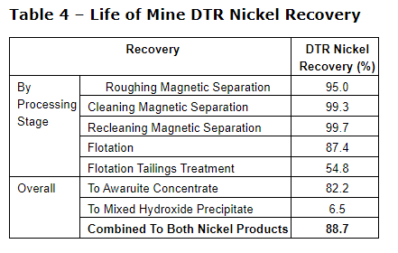 The project will utilize a conventional processing flowsheet with SAG (semi-autogenous grinding) mill-based grinding followed by magnetic separation, froth flotation and a flotation tailings leach circuit, as previously described in the company's June 27, 2023, news release. Overall Davis tube recoverable (DTR) nickel recovery is estimated to average 88.7 per cent for the life of mine, with 93 per cent of the nickel produced contained in a high-grade flotation concentrate (60 per cent nickel) and the balance (7 per cent of nickel produced) contained in a mixed hydroxide precipitate (MHP) produced from a tailings leach circuit.