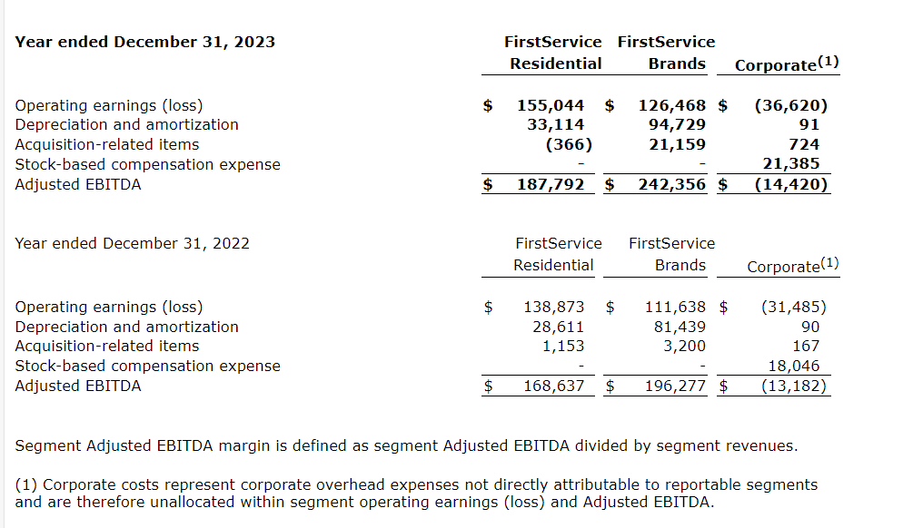 FirstService Brands recorded revenues of $583-million, up 1 per cent versus $578-million in the prior-year period. Revenues declined 7 per cent on an organic basis due to milder weather patterns at FirstService's restoration operations, compared with the significant loss claims activity from hurricanes Ian and Fiona in the prior-year quarter. The division top-line performance included very strong growth at Century Fire together with solid contribution from the company's home services brands, partially offsetting the restoration-driven headwinds. Adjusted EBITDA for the quarter was $61.1-million, compared with $67.4-million in the prior-year quarter. Operating earnings were $20.6-million, versus $44.0-million in the prior-year quarter. The segment adjusted EBITDA margin decline was primarily attributable to lower profitability in FirstService's restoration operations due to the reduced weather-related activity during the period. The operating earnings margin was further impacted by contingent acquisition consideration fair value adjustments.
