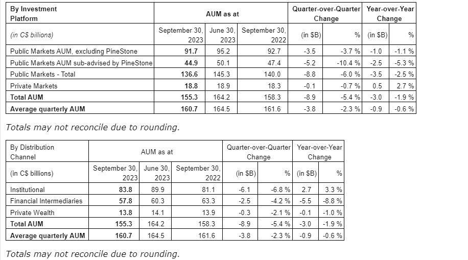 Fiera Capital Corp. has released its preliminary estimate of assets under management (AUM) of approximately $155.3-billion as at Sept. 30, 2023, compared with $164.2-billion as at June 30, 2023.