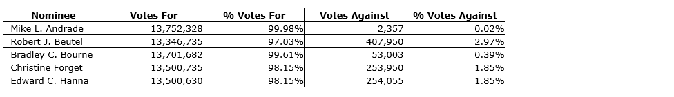 The detailed results of the vote for the election of directors of Firan are set out in the attached table.