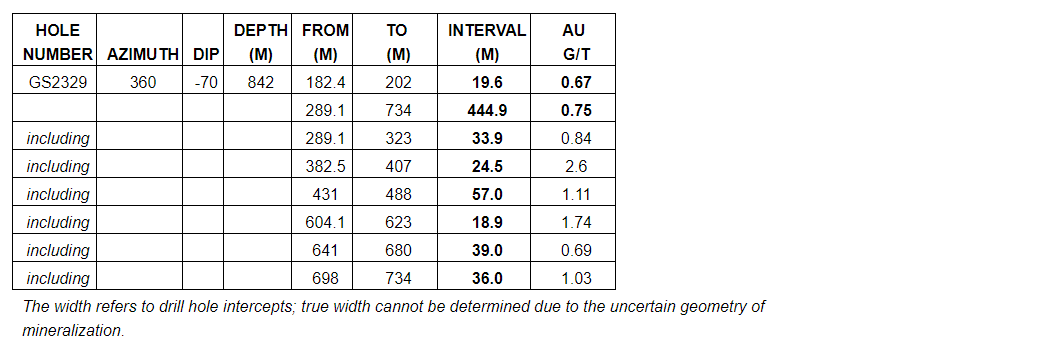 Assays are still pending for the holes drilled north of the Dolphin Cleary zones (GS2320 to GS2328). The primary purpose of these holes was to define the mineralization extent in the north and immediate northwest, and they have successfully intersected the up-dip of the overall mineralized trend.