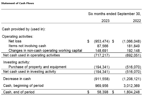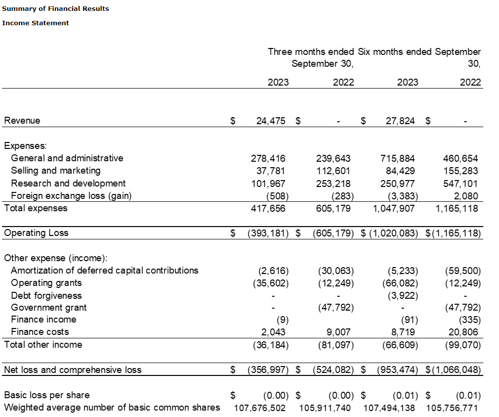 Forward Water Technologies Corp. has filed its condensed consolidated audited financial statements and related management's discussion and analysis for the three and six months ended Sept. 30, 2023. Copies of these financial statements and related management's discussion and analysis can be found on the company's issuer profile on SEDAR+. All financial information in this news release is reported in Canadian dollars, unless otherwise indicated.