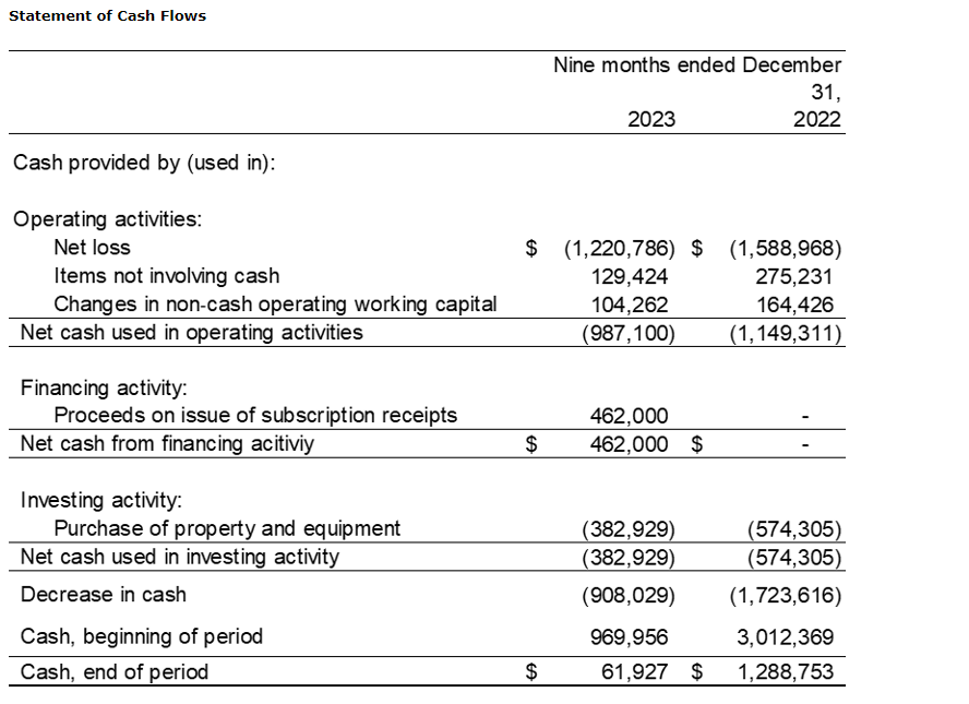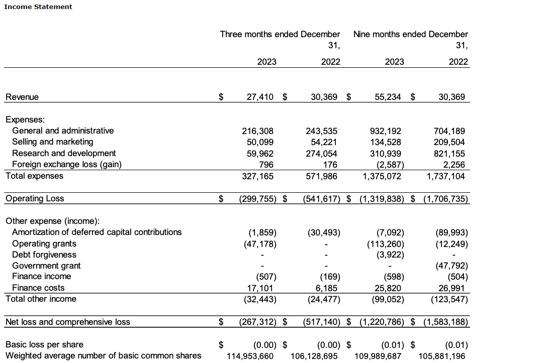 Forward Water Technologies Corp. has filed its condensed consolidated audited financial statements and related management's discussion and analysis for the three and nine months ended Dec. 31, 2023. Copies of these financial statements and related management's discussion and analysis can be found on the company's issuer profile at SEDAR+. All financial information in this news release is reported in Canadian dollars, unless otherwise indicated.