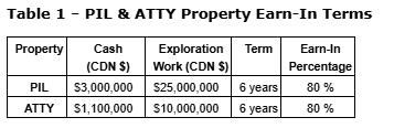Freeport may earn 80 per cent of the Pil and Atty projects by expending $35-million in exploration expenditures and making cash payments of $4.1-million (refer to Table 1 below for further details).