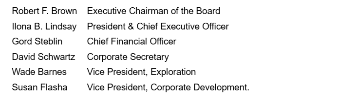 Subsequent to the meeting, the board of directors also reappointed officers for a further year as shown in the attached table.