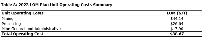 The average 2023 LOM plan site operating costs are estimated at $88.67 per tonne milled and are summarized in an attached table. Operating costs have been developed based on recent actual costs considering minor specific allowances for business improvement initiatives that are currently being implemented. Operating costs are based on long-term assumptions, including a Mexican peso exchange rate of 20 Mexican pesos per $1 (U.S.).