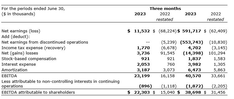 The company is reporting operating earnings of $17.0-million for the quarter ended June 30, 2023, a 49-per-cent increase from $11.4-million in the same quarter in the prior year. The increase in operating earnings includes over $7.0-million in interest income earned on the proceeds of disposition of Worldsource and this had the most significant impact on the growth in operating earnings.