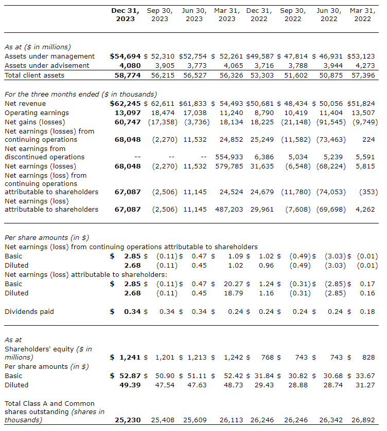 Guardian Capital Group Ltd. has released its 2023 financial results.