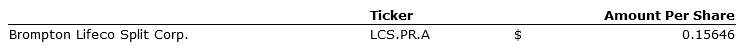 The distribution amount for LCS.PR.A reflects the new distribution rate of 70 cents per annum commencing April 30, 2024.