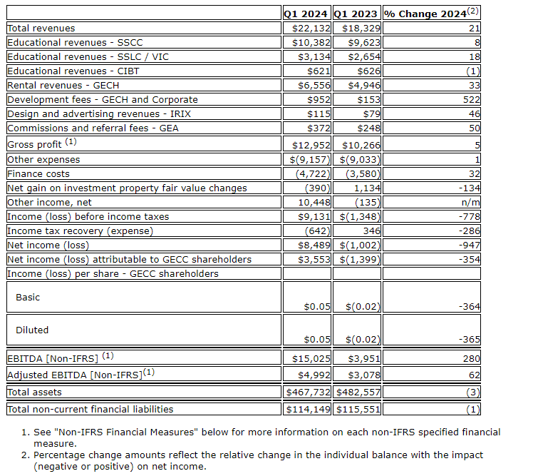 GLOBAL EDUCATION COMMUNITIES CORP. REPORTS FISCAL 2024 FIRST QUARTER FINANCIAL RESULTS