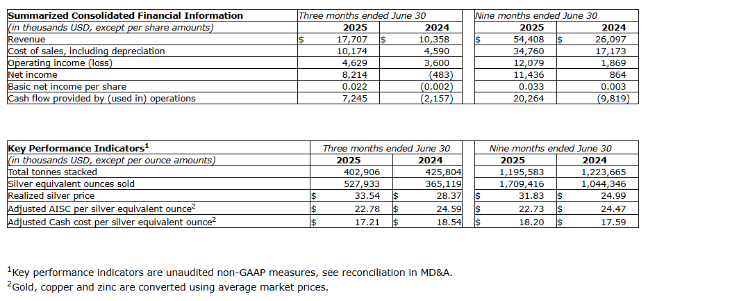 GoGold Resources Inc. has released the financial results for the quarter ending June 30, 2025, with the Parral tailings reprocessing project generating revenue of $17.7-million (all amounts are in United States dollars) from the sale of 527,933 silver equivalent ounces.