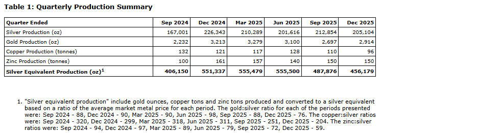 GoGold Resources Inc. produced in its first quarter ending Dec. 31, 2025, 456,179 silver equivalent ounces, consisting of 205,104 silver ounces, 2,914 gold ounces, 96 tonnes of copper and 150 tonnes of zinc.