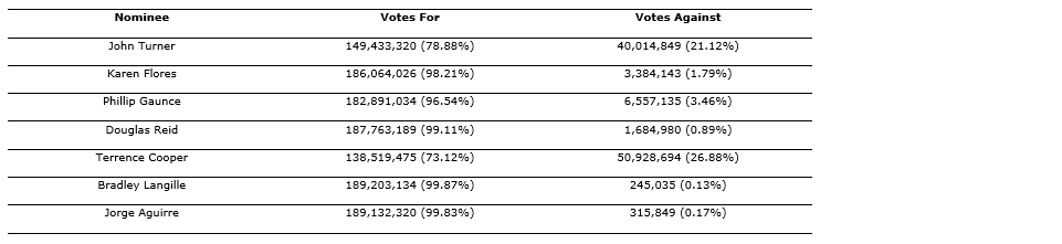 At the annual and meeting of shareholders of GoGold Resources Inc., held on March 26, 2026, the shareholders re-elected John Turner, Bradley Langille, Phillip Gaunce, Jorge Aguirre, Terrence Cooper, Douglas Reid and Karen Flores as directors of the company for the forthcoming year. Each director was elected by a majority of the votes and the attached table presents the votes in respect of the election of each director.