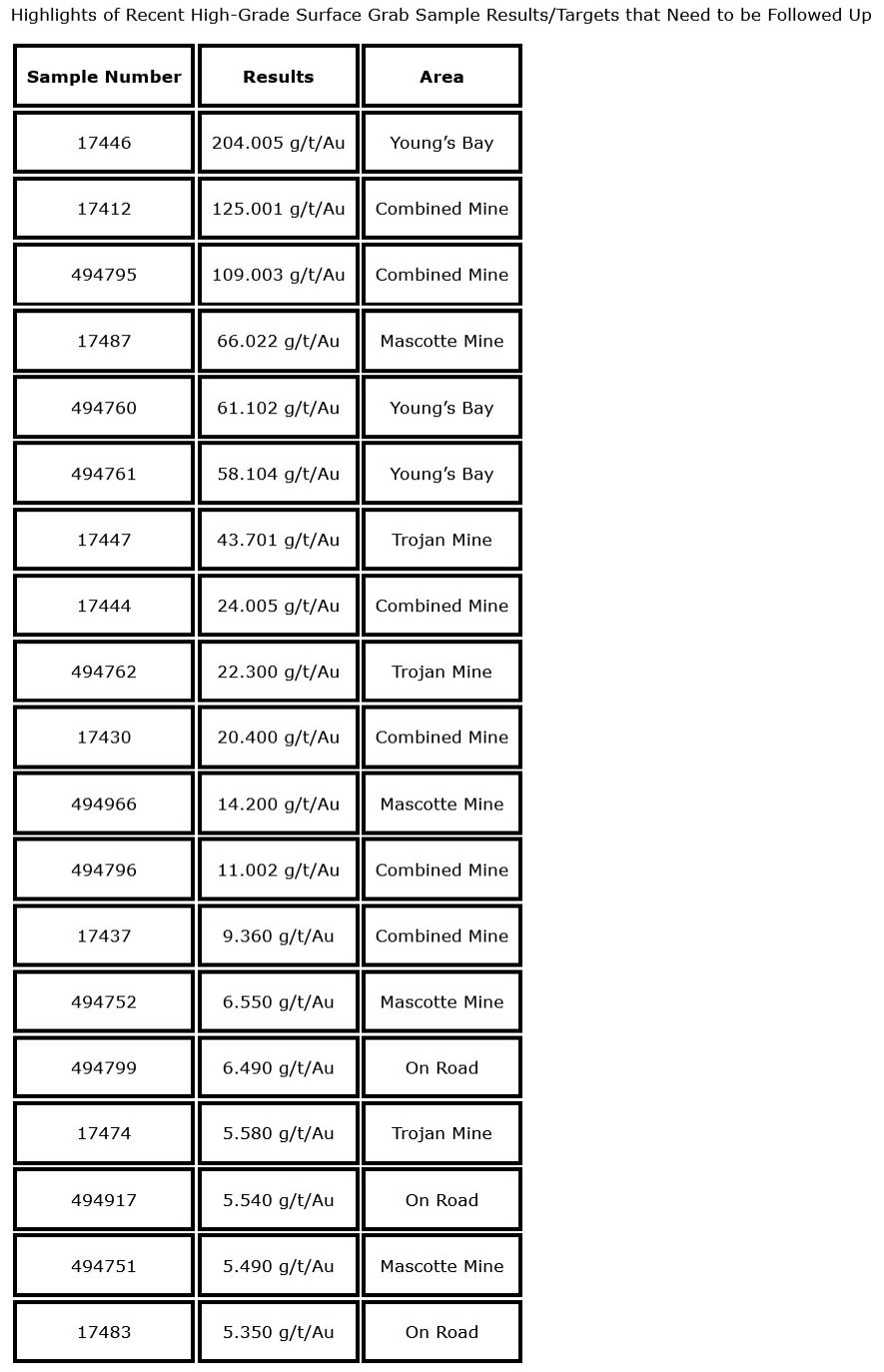 GOLDEN RAPTURE MINING HIGH-GRADE RESULTS WITH FOLLOW-UP SAMPLING PROGRAM AND DRILLING TO COMMENCE
