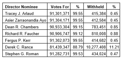 Shareholders also approved the reappointment of PricewaterhouseCoopers LLP as the auditor of the company.