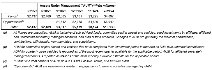 GALAXY ASSET MANAGEMENT: FEBRUARY 2024 MONTH END AUM
