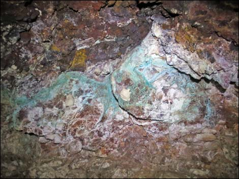 Figure 4. Vein of copper in the upper wall of the tunnel5 | Figure 5. Miners Cabin at Azure Ridge Mine |