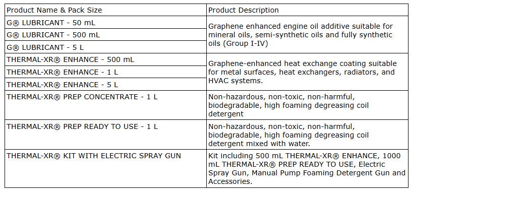Graphene Manufacturing Group Ltd. has launched its new global product catalogue. The product range includes both G Lubricant and Thermal-XR, including a new Thermal-XR Kit with an electric spray gun for easy use.