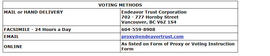 Vancouver, B.C. For all shareholders voting by proxy, all proxies for the AGM must be received by Endeavor Trust Corp. by 10 a.m. Pacific Time on Wednesday, April 1, 2026, as outlined in the attached table.
