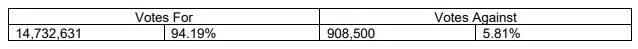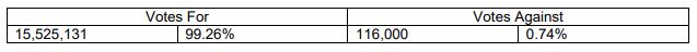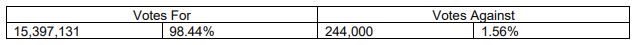 Voting results are set out in an attached table.
