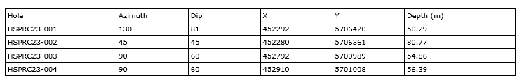 2023 drill hole summary