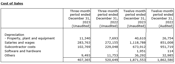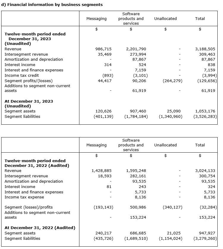 - Continued business from the corporation's major customers. The actual gross margin of the software products and services segment achieved 45.0 per cent for the year ended Dec. 31, 2023, and with the expected increase in revenue earned from business with key customers of the corporation, the forecasted gross margin of 41.2 per cent in 2024 is reasonable and achievable. The man-hour rates in 2023 were in line with prevailing market rates, hence the increment in man-hour rates in 2024 will be at reduced rate while the salary increments are factored in the 2024 budget. Management believes that the forecast revenue and gross margin is conservative and reasonable;