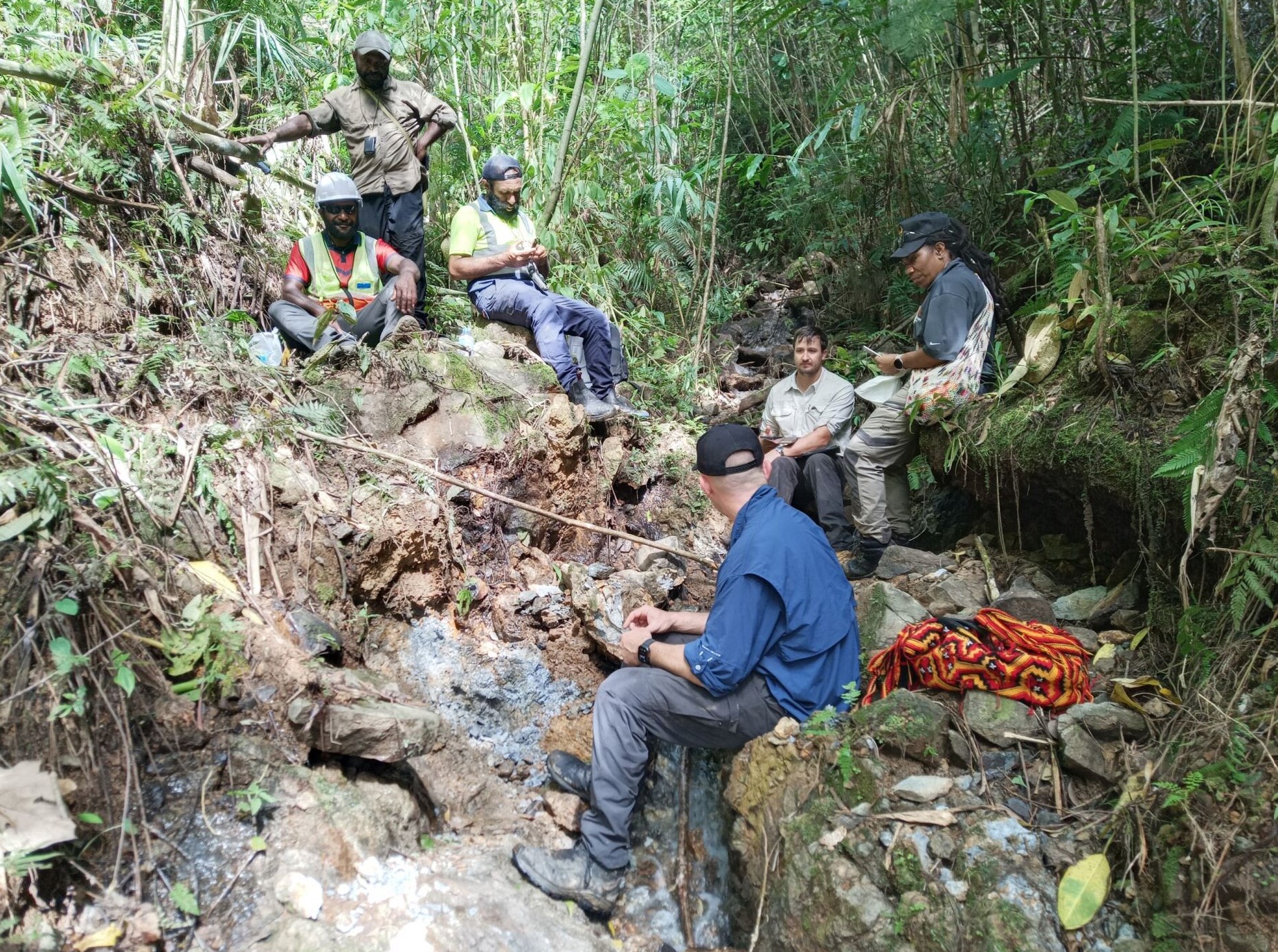 Figure 10: Exploration team conducting geological mapping and rock-chip sampling at the Magiabe West Vein within the southern portion of the Wild Dog Structural Corridor, East New Britain, Papua New Guinea.