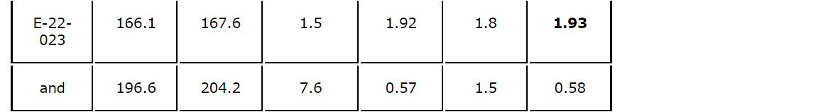 The drill holes E-22-020 through E-22-024 extend this gold-bearing system 200 metres to the north and include the higher-grade material of 1.05 g/t gold equivalent over 4.6 metres and 0.74 g/t gold equivalent over 26 metres in hole E-22-020, and 1.1 g/t gold equivalent over 6.1 metres found in hole E-22-022.