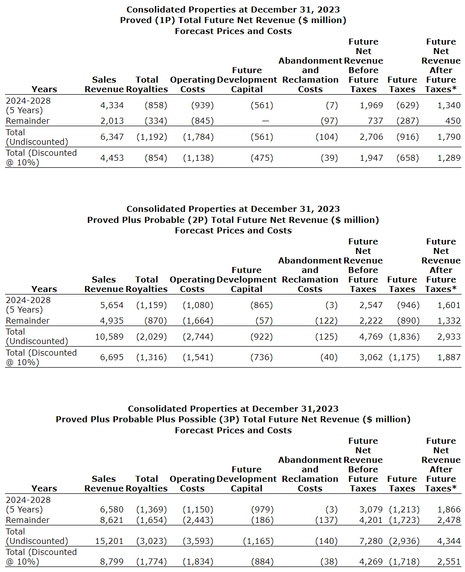 - After-tax NAV of $800-million (1P), $1.4-billion (2P) and $2-billion (3P);