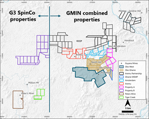 G3 SpinCo will be funded with C$45 million of cash comprised of C$30 million from G2’s treasury and C$15 million from GMIN (the “Cash Transfer”). G2 shareholders will own 100% of G3 SpinCo which will continue to own G2’s interests in the Tiger Creek property, the Peters Mine property and Property B, providing G2 shareholders with continued exposure to highly prospective properties to be advanced by the G2 team.
