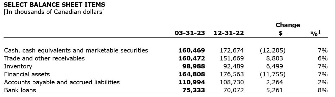 Bank loans: As at March 31, 2023, bank loans were at $75,333, an increase of $5,261, or 8 per cent, as compared with Dec. 31, 2022, due to accrued interest of $2,186 and the appreciation of BRL, COP, CLP and MXN against CAD.