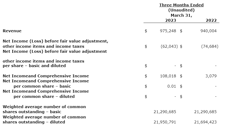 As previously announced on April 21, 2023, the company announced that it has refinanced mortgages due April 1, 2023, totalling $18,080,724 for a term of two years at a fixed rate of 6.98 per cent. Subsequently, as part of the redevelopment of building 2 at Tri-City Mall and the redevelopment at the Three Hills property, the company closed additional mortgages in April, 2023, totalling $3.3-million and repaid an existing mortgage of $224,794 on the Three Hills property.