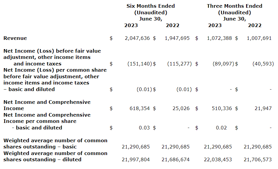 Details of the six and three months financial results for fiscal 2023 and 2022, under international financial reporting standards (IFRS), as summarized in the associated table, are also available at SEDAR or on the company's website.