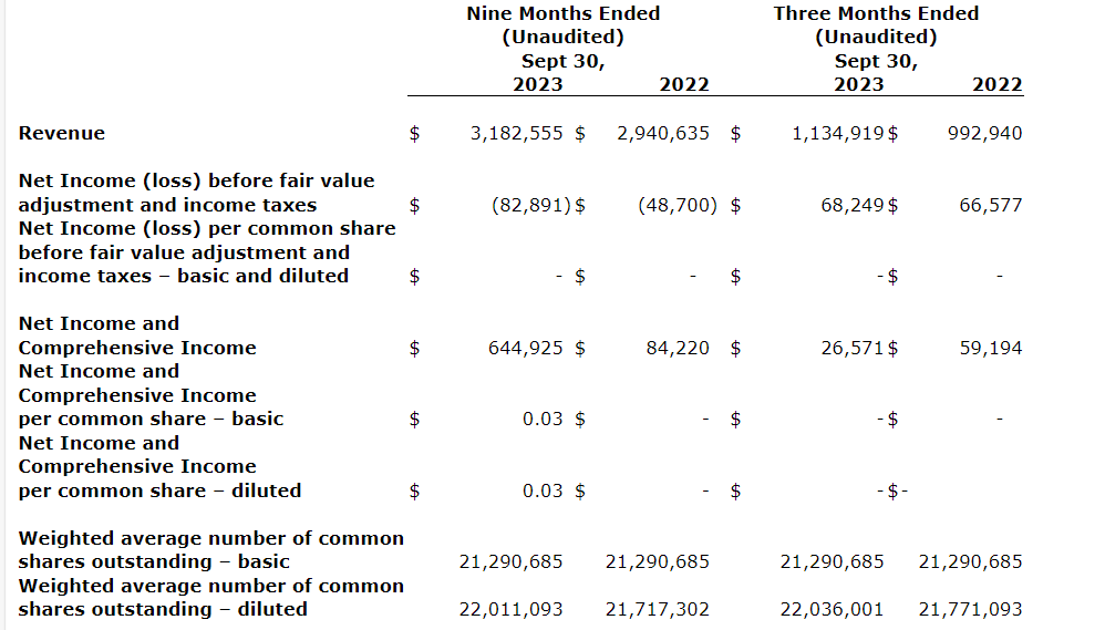 Details of the nine- and three-month financial results for fiscal 2023 and 2022 under international financial reporting standards (IFRS), as summarized herein, are also available on SEDAR+ or the company's website.