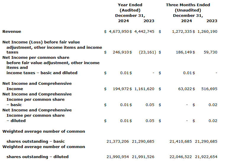 Details of the 12-month and three-month financial results for fiscal 2024 and 2023 under international financial reporting standards (IFRS), as summarized below, are also available on SEDAR+ or the company's website.