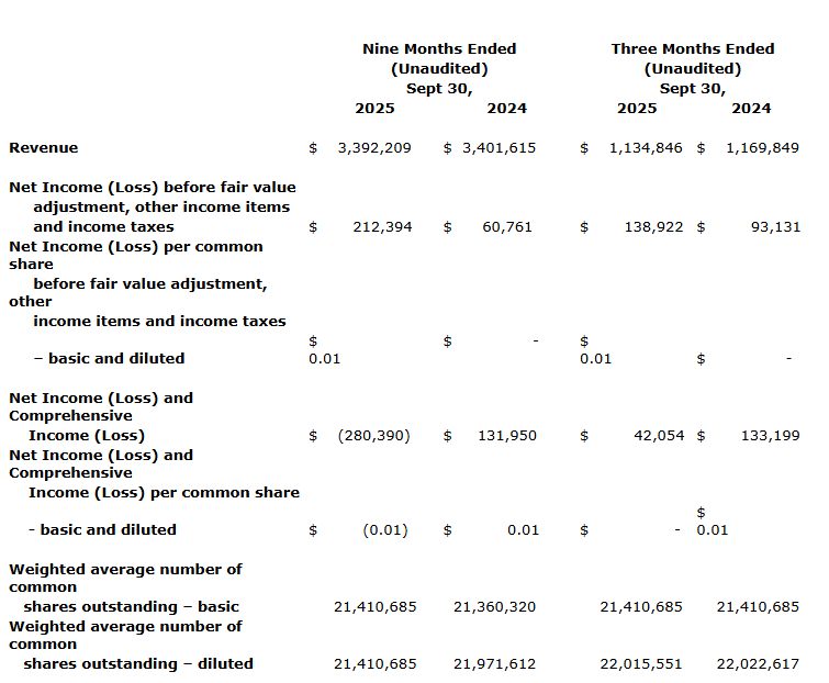 Details of the nine- and three-month financial results for fiscal 2025 and 2024 under international financial reporting standards (IFRS), as summarized below, are also available on SEDAR+ or the company's website.