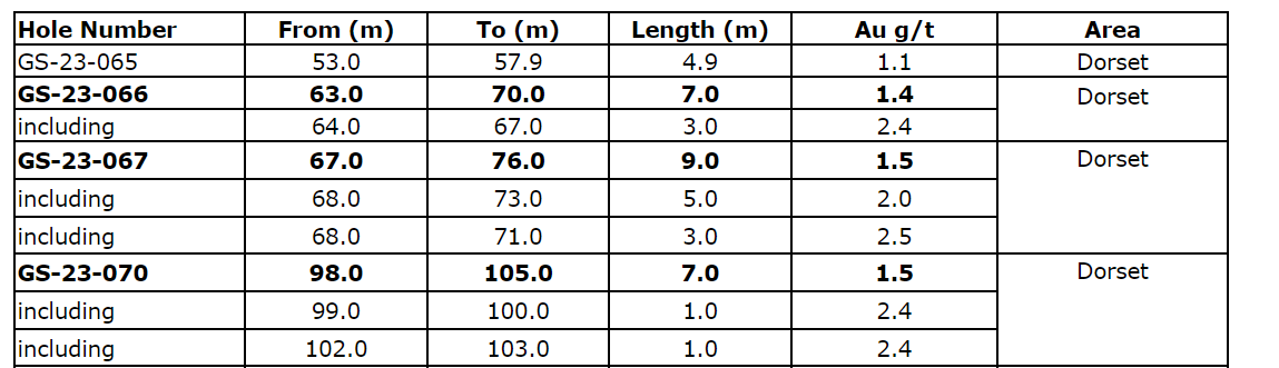 ANGUS GOLD INTERSECTS MORE HIGH-GRADE INTERVALS OF UP TO 5.1 G/T AU OVER 8.0 METRES AT THE DORSET GOLD ZONE, GOLDEN SKY PROJECT