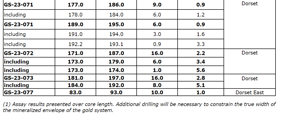Steve Burleton, chief executive officer of Angus, stated: "We are extremely pleased with the results from the winter 2023 drilling program. Our key objectives at the Dorset zone continue to be strike extension and discovery of higher-grade zones within Dorset, and this program was successful on both counts. These results also demonstrate that we can improve upon the historic results from Dorset, which bodes well for future resource estimates. We are excited to begin our summer 2023 drilling program this week, which will see two drills focused on the BIF gold zone and some new regional exploration targets, including the Splay zone target to the south of the BIF. Our winter geophysical program was a tremendous success, generating numerous new targets in both the BIF and the Splay zone. We now have almost full geophysical coverage across these areas and will begin the exciting task of making more gold discoveries. We look forward to the months ahead and will keep investors informed as results come in."