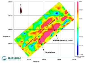 Falcon AGG data were inverted using both unconstrained and structurally guided approaches. Cross‑gradient joint inversion was applied to align density contrasts with the VTEM™‑derived conductive structures. The Company plans to complete a higher-resolution ground gravity survey across the CBSZ, which will further refine the integrated modeling and future targeting.