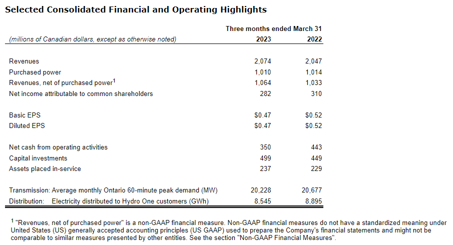 Hydro One Ltd. has released its financial and operating results for the first quarter ended March 31, 2023.